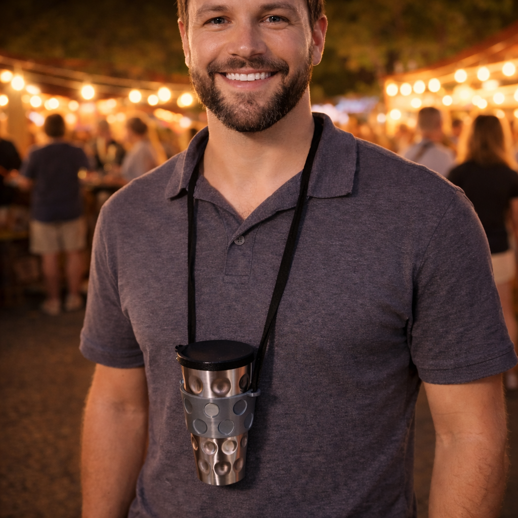 Der Dubbe-Gral-Halter aus robustem Kunststoff ermöglicht es, den 0,5l Dubbe Gral aus Edelstahl bequem um den Hals zu tragen. Der passende Deckel sorgt dafür, dass nichts verschüttet wird – ideal für Weinfeste, Festivals oder Wanderungen, bei denen du beide Hände frei haben möchtest. Der Dubbe Gral sitzt perfekt in der Halterung, und das typische Dubbemuster wird stilvoll auf dem Kunststoff fortgeführt. So kannst du deine Schorle genießen, ohne dir Gedanken über Kleckern oder Umkippen machen zu müssen.