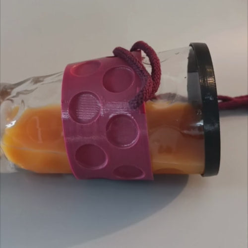 Die perfekte Lösung zum Umhängen....paßgenau und nix verschütten dank Deckel.