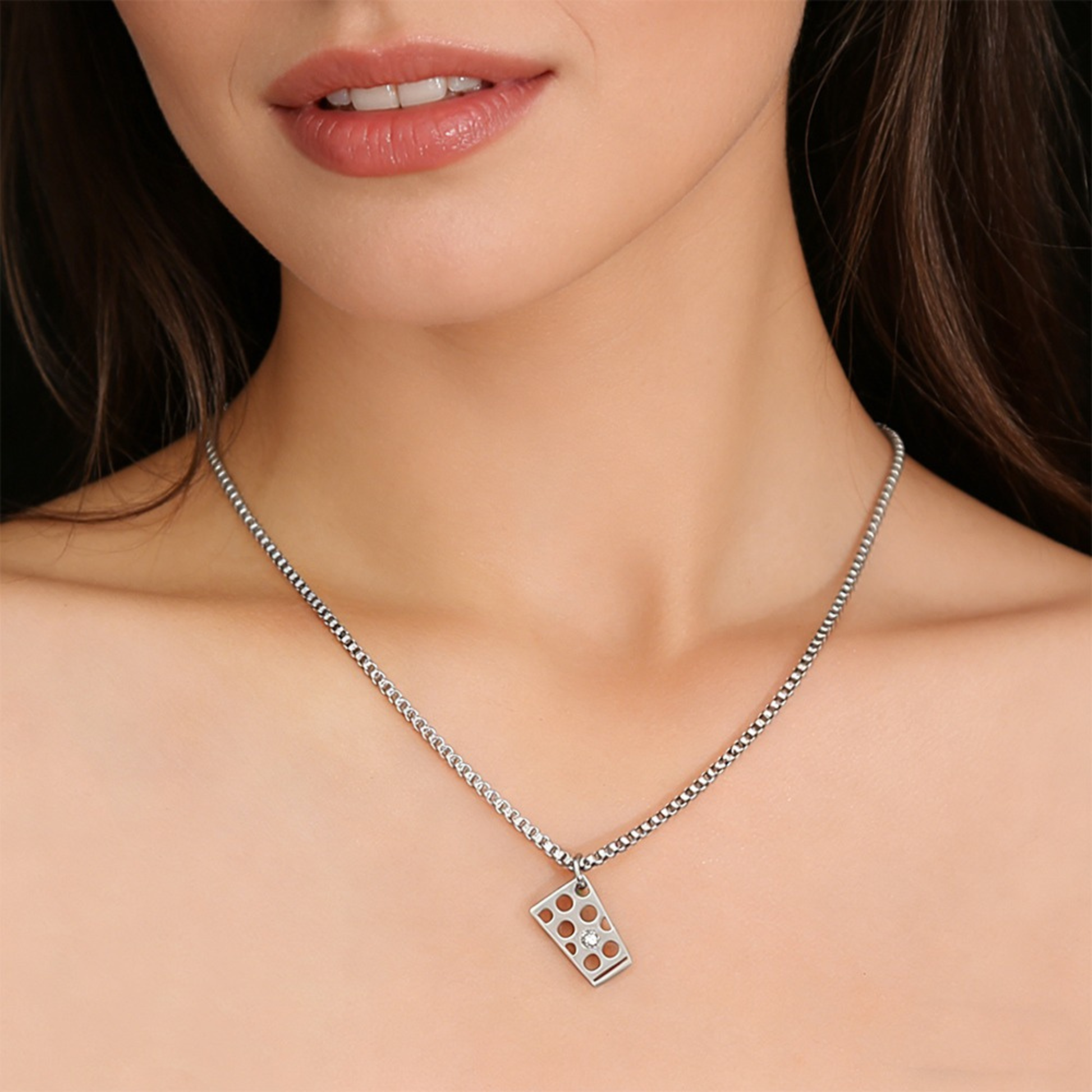 Dubbeglas Halskette mit Zirkon aus Edelstahl