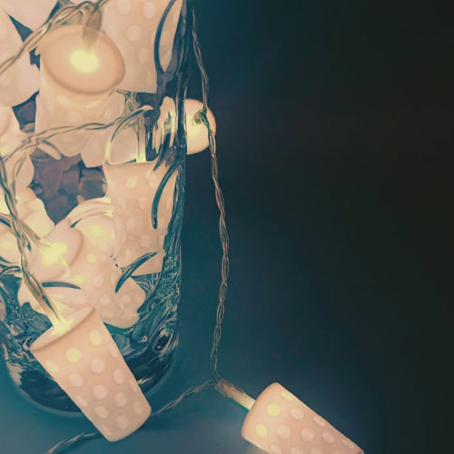 Verleihe deinem Zuhause mit unserer einzigartigen Dubbeglas Lichterkette eine gemütliche Atmosphäre! Wähle aus verschiedenen Optionen mit unterschiedlicher Anzahl von Lampen, die jeweils mit 3,5 cm großen Lampenschirmen aus weißem Kunststoff im charakteristischen Dubbeglas-Design ausgestattet sind. Dank der 5mm großen LEDs sind die Lampen schön hell. Die Lichterkette wird mit AA-Batterien betrieben und ist somit flexibel einsetzbar, ohne lästige Kabel. Perfekt für den Innenbereich und eine tolle Dekoration für besondere Anlässe oder einfach, um deinem Zuhause eine moderne Note zu verleihen. Hol dir jetzt dieses einzigartige Stück regionaler Handwerkskunst nach Hause! Wähle einfach die gewünschte Anzahl an Lampen im Menü aus und genieße die gemütliche Atmosphäre. Batterien nicht enthalten.